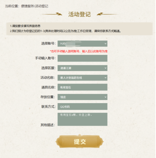 4、若您需要参加活动,请在申请时间以游戏内“飞鸽”功能联系客服提交申请,提交以下信息:有用宝石数量、存放位置,需要追赶在线时间的数值。