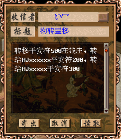 例:删除江湖平安符*80,在钱庄,加给HJxxxxxxx,江湖平安符*80。