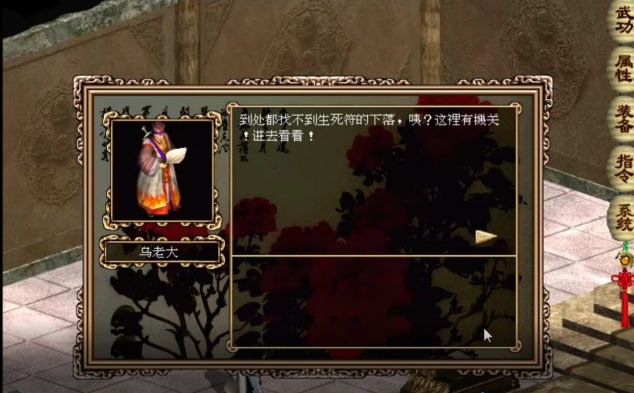 3.前往灵鹫宫内,四处走走,会在正殿遇见乌老大触发对话,他们正绑走一个小女孩。