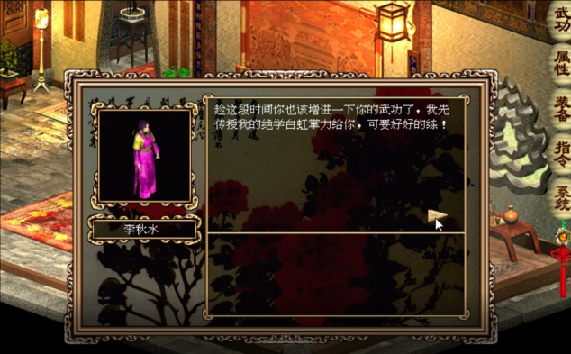 4.回到西夏皇宫把这件事告诉李秋水,她会传授给你白虹掌力1级,任务完成。
