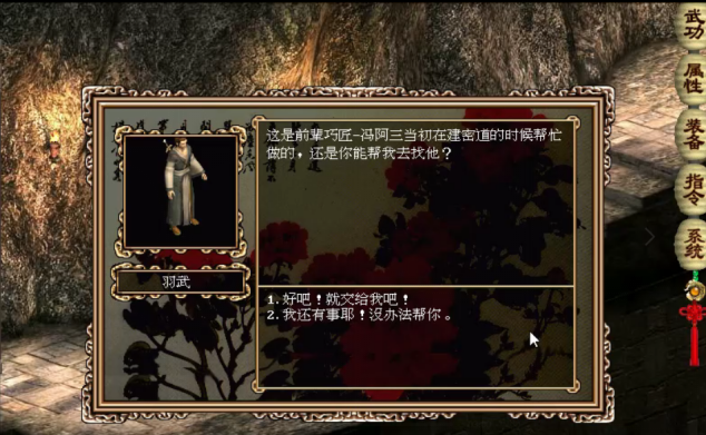 1.满足触发条件在逍遥派-密道中找到羽武对话触发任务。得知是巧匠-冯阿三帮忙做的,需找他帮忙。