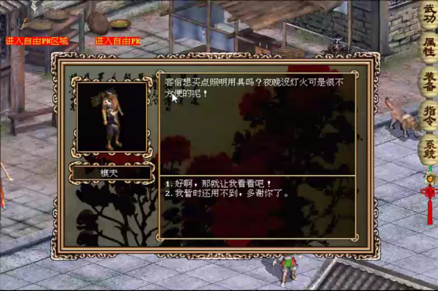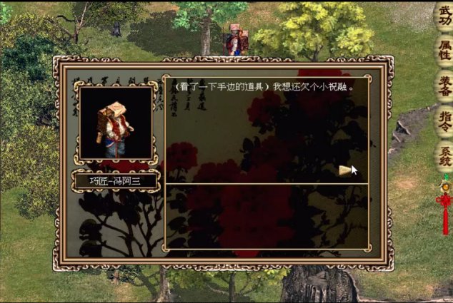 2.玩家出聪辩山庄后,往百花谷方向寻找冯阿三(野外6295,820)对话,他会让玩家准备小祝融。