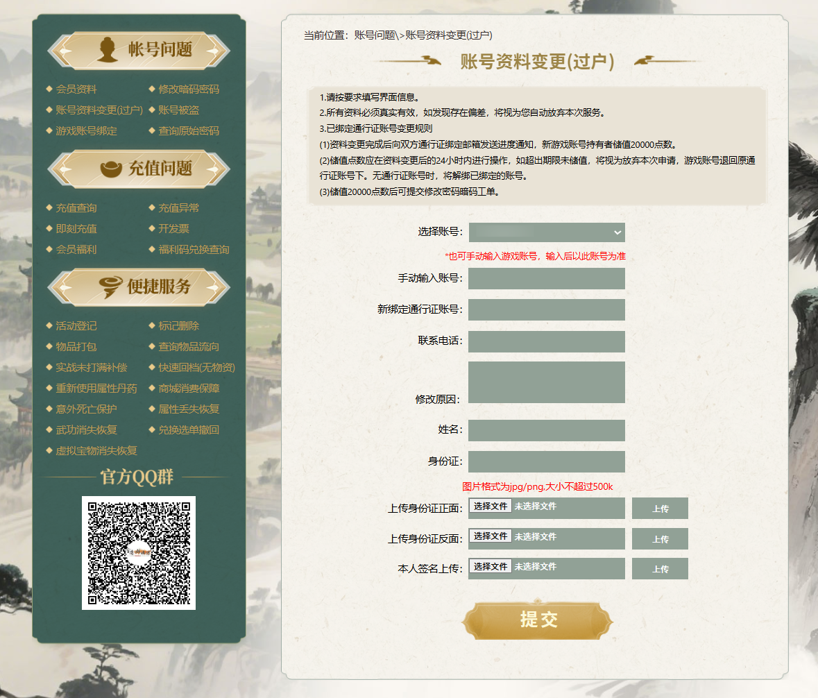 游戏官网首页左侧设有 “客服中心” 入口,登录【会员账号】(非游戏账号)后即可使用全部服务。
